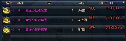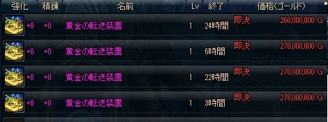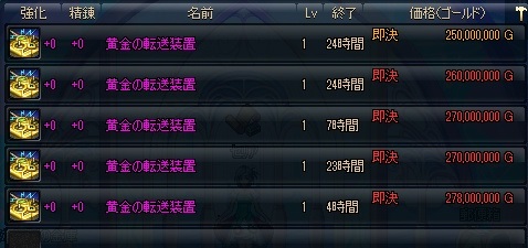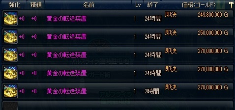 200M切るかな?と思ったけど競売で見かけた最安値は230Mぐらいだった